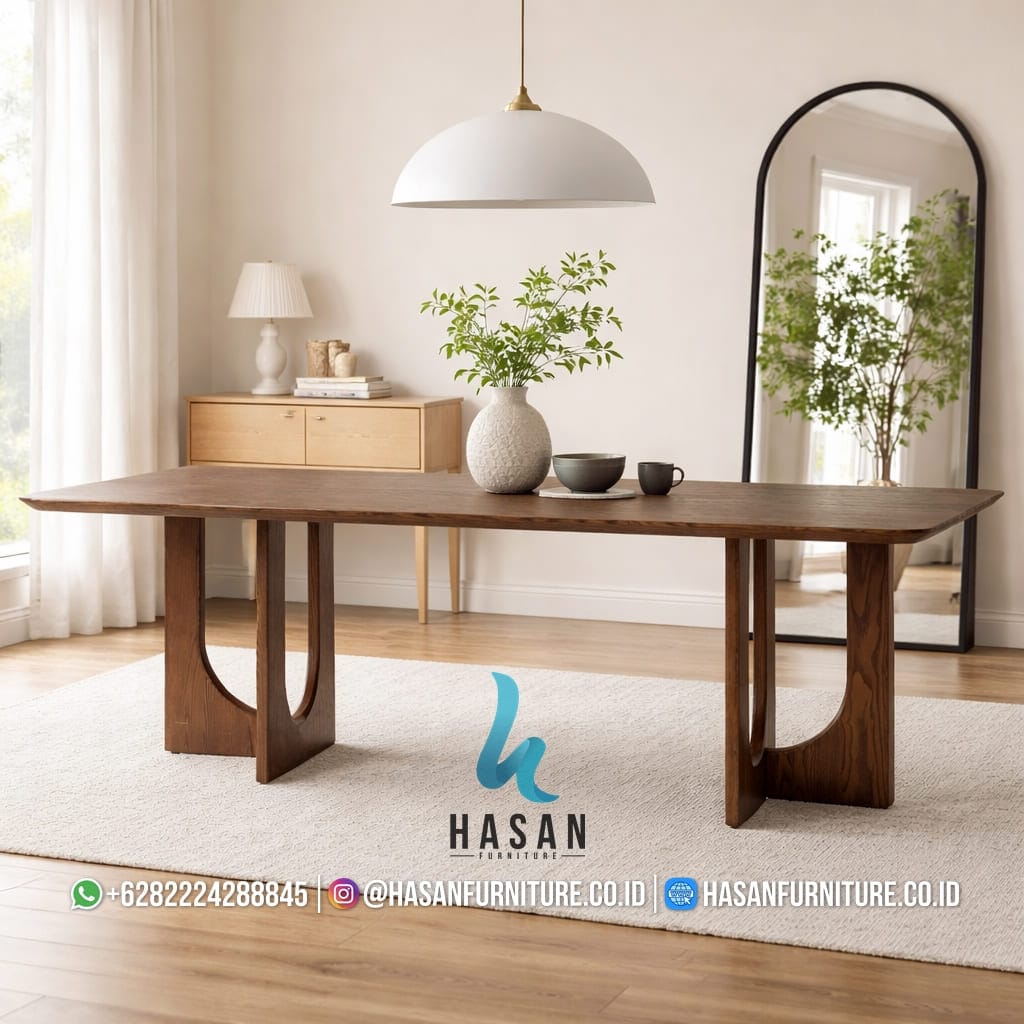 Meja makan ini adalah investasi furniture yang akan tetap relevan hingga generasi mendatang, menggabungkan kekuatan konstruksi yang sangat kokoh dengan desain yang artistik.