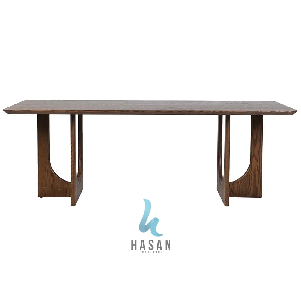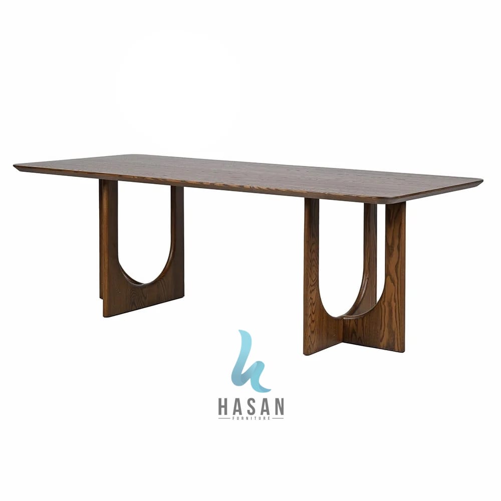 Hadirkan keindahan abadi di ruang makan Anda dengan Rectangular Bold-Arc Pedestal Jati Dining Table. Produk ini dirancang khusus oleh Hasan Furniture untuk menonjolkan kekuatan material kayu jati grade A melalui detail konstruksi kaki yang sangat unik dan masif.