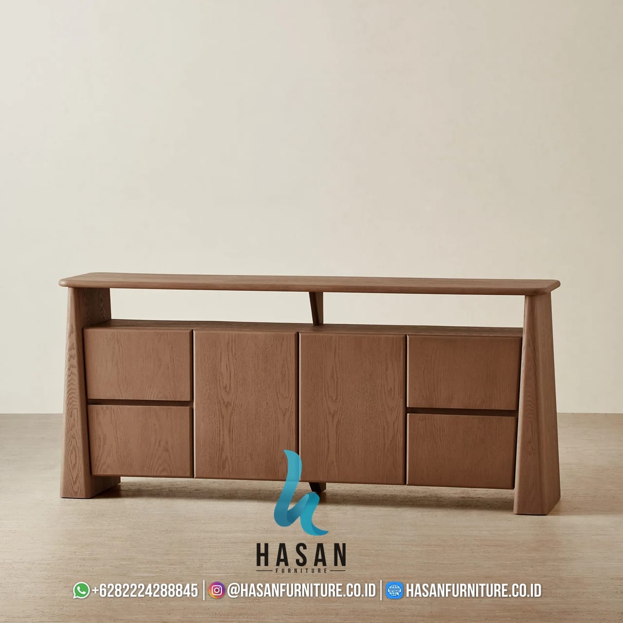 Segera lengkapi interior hunian Anda dengan Scandinavian Open Shelf Sideboard Jati. Kami melayani pengiriman ke seluruh Indonesia dengan jaminan pengemasan yang aman dan kualitas pengerjaan terbaik langsung dari Jepara.